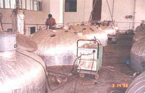 本厂引进成套专业加工不锈钢的先进设备,以雄厚的技术实力,先后为众多厂家生产整套饮料设备,整套的化妆品设备,不饱和树脂生产的全套设备,整套的粉体混合输送生产线及其他冷凝罐、热交换器、过滤器、反应釜等不同规格的容器和不同类型的传输设备,产品有效地利用空间,做到美观实用。我厂可以根据客户的要求,提供设计、制造、安装食品或化工生产线的服务